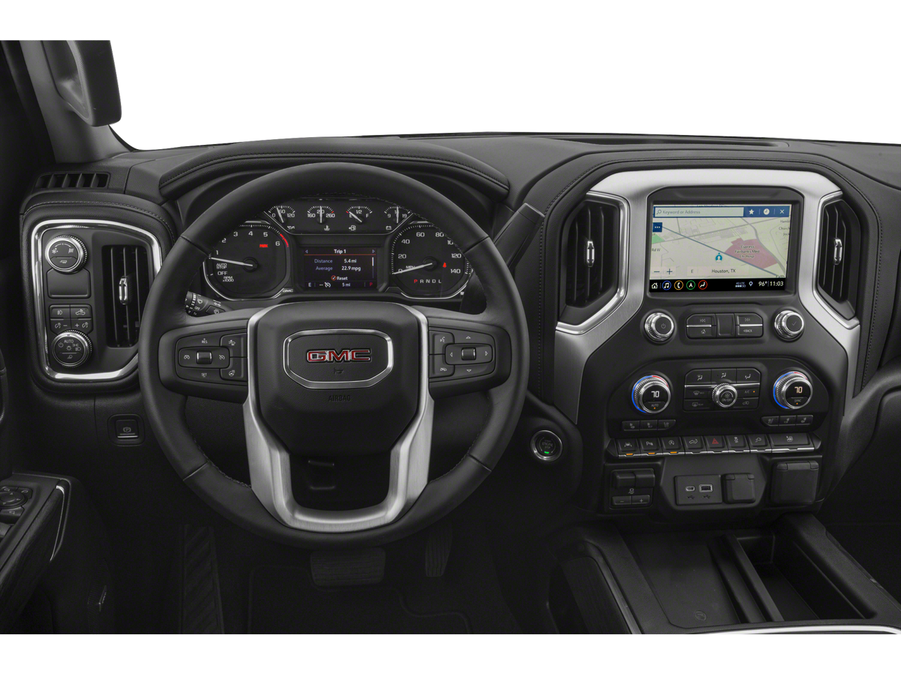 Protect the vehicle from unwanted accidents with a cutting edge backup camera system. Never get into a cold vehicle again with the remote start feature on this unit. The installed navigation system will keep you on the right path. The leather seats in the vehicle are a must for buyers looking for comfort, durability, and style. This 2020 GMC Sierra 1500 offers Automatic Climate Control for personalized comfort. It features steering wheel audio controls. Engulf yourself with the crystal clear sound of a BOSE sound system in it. The GMC Sierra offers Android Auto for seamless smartphone integration. The vehicle has a clean CARFAX vehicle history report. Apple CarPlay: Seamless smartphone integration for the vehicle - stay connected and entertained on the go! Keep your hands warm all winter with a heated steering wheel in this model . This 1/2 ton pickup features a hands-free Bluetooth® phone system. It is outfitted with an OnStar communication system.