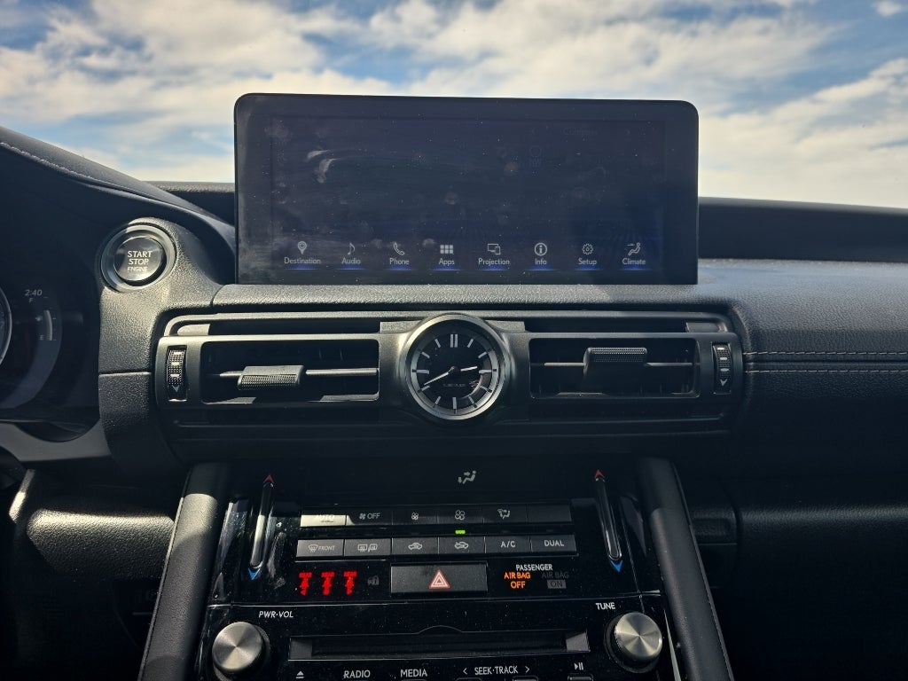 This 2023 Lexus IS 350 offers Android Auto for seamless smartphone integration. This model has a clean CARFAX vehicle history report. You'll never again be lost in a crowded city or a country region with the navigation system on this unit. Bluetooth® technology is built into this 2023 Lexus IS 350 , keeping your hands on the steering wheel and your focus on the road. This model's blind spot monitor enhances safety. Protect the vehicle from unwanted accidents with a cutting edge backup camera system. This unit offers Apple CarPlay for seamless connectivity. The leather seats in this Lexus IS 350 are a must for buyers looking for comfort, durability, and style. The vehicle is pure luxury with a heated steering wheel. Start this unit from inside with remote start. This model keeps you comfortable with Auto Climate. This vehicle is a certified CARFAX 1-owner. It has a V6, 3.5L high output engine.