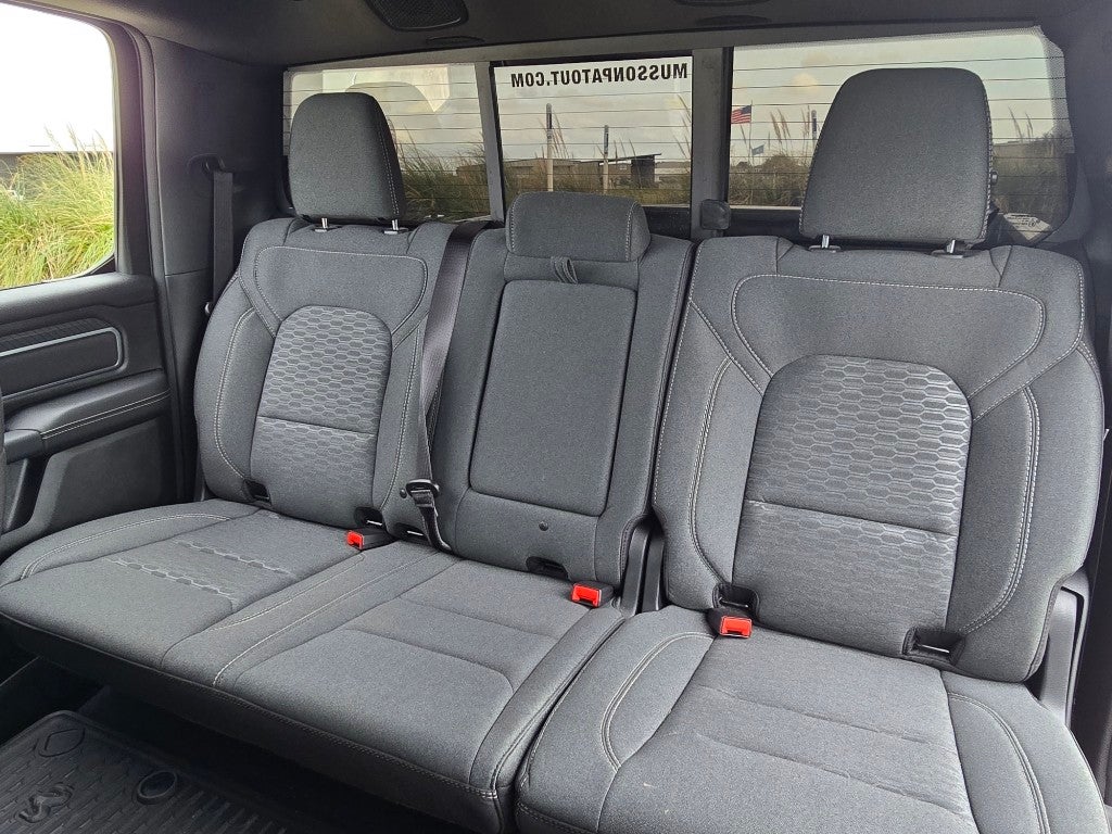 Quick Order Package 21Z Big Horn. Big Horn Level 2 Equipment Group: Google Android Auto; SiriusXM Radio Service; USB Host Flip; Power Adjustable Pedals; Leather Wrapped Steering Wheel; Integrated Voice Command with Bluetooth®; 12" Touchscreen Display; Glove Box Lamp; Auto Power-Folding Mirrors; 115V Auxiliary Rear Power Outlet; Media Hub with 2 Charge Only USBs; Heated Front Seats; Security Alarm; Black Premium Power Mirrors; Apple CarPlay; Premium Overhead Console; 9 Amplified Speakers with Subwoofer; Disassociated Touchscreen Display; Body Color Fender Flares; Remote Tailgate Release; 115V Auxiliary Power Outlet; LED Dome Lamp with On/off Switch; Universal Garage Door Opener; 2nd Row in Floor Storage Bins; Sun Visors with Illuminated Vanity Mirrors; LED Footwell Lighting; Rear Window Defroster; Integrated Center Stack Radio; Rear View Auto Dim Mirror; Rear Power Sliding Window; Connectivity - US/Canada; GPS Navigation; 4G LTE Wi-Fi Hot Spot; GPS Antenna Input; Overhead LED Lamps; Exterior Mirrors with Heating Element; Auto Dim Exterior Driver Mirror; SiriusXM with 360L; Global Telematics Box Module; Connected Travel and Traffic Services; Heated Steering Wheel; Black Exterior Mirrors; Configurable Drive Mode; 400W Inverter; HD Radio; Deluxe Cloth Bucket Seats; Uconnect 5 Navigation with 12.0" Display Radio; Exterior Mirrors with Supplemental Signals; Steering Wheel Mounted Audio Controls; Exterior Mirrors Courtesy Lamps; Air Conditioning ATC with Dual Zone Control; Cluster 7.0" TFT Color Display; Convex Wide-Angle Exterior Mirror Insert. Bed Utility Group: MOPAR Spray in Bedliner; MOPAR Deployable Bed Step; MOPAR 4 Adjustable Cargo Tie-Down Hooks; Pick-Up Box Lighting; Exterior 115V AC Outlet. Quick Order Package 23Z Big Horn. 20" X 9" Aluminum Chrome Clad Wheels. 9 Amplified Speakers with Subwoofer. Anti-Spin Differential Rear Axle. Trailer Brake Control. Billet Silver Metallic CC. MOPAR Front and Rear Rubber Floor Mats. Rear Wheelhouse Liners. 3.55 Rear Axle Ratio. **Equipment listed is based on original vehicle build and subject to change. Please confirm the accuracy of the included equipment by calling the dealer prior to purchase.**
